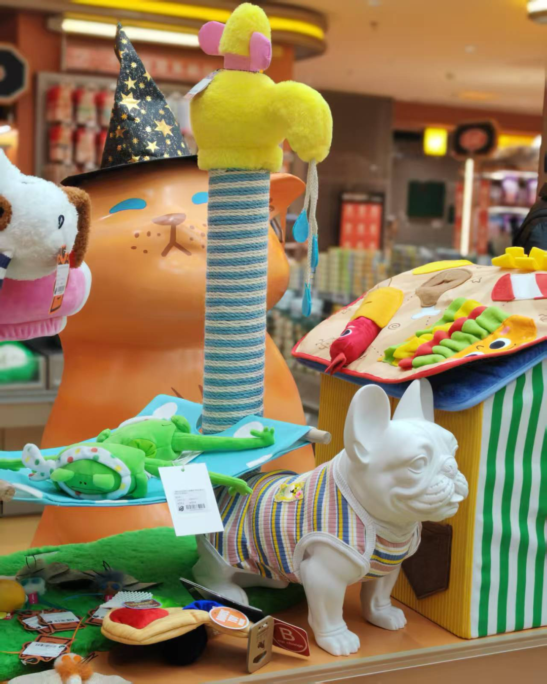 入局者簇拥下,宠物线下零售业态迎来井喷期,一些头部零售品牌跨界入局。去年开始,名创优品陆续开始在线下门店开设出宠物专区,取名为“MINISO PET”,已在上海、广州、北京等地开启业态。剁椒Spicy观察到,“MINISO PET”在北京TheBox商场二层专区已经悄然开业,货架陈列丰富,既包含了名创优品自营宠物周边产品,亦有不少猫犬食品和用品。