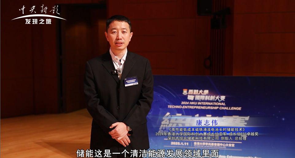 《高性能低成本硫铁液流电池长时储能技术》 2024年香港大学国际科创大赛成长组亚军 成长组ESG卓越奖 深圳市综合储能科技有限公司 创始人 总经理 康志伟: