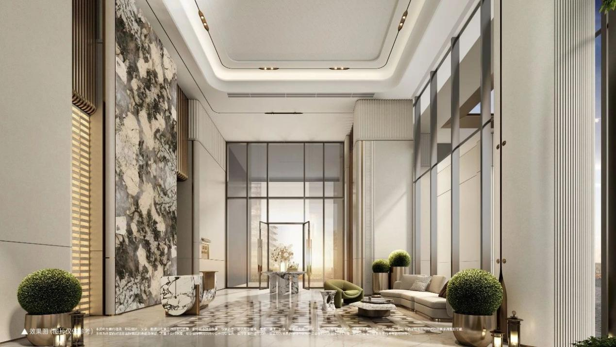 据介绍,项目采用大面积铝板外立面设计,社区景观融入层次分明的园林艺术,营造出极具品质感的居住氛围。9米挑高的入户大堂,搭配金属与石材的艺术装饰,加之典雅的负一层车马厅与私享式电梯厅,进一步提升归家的仪式感。两个主力户型均拥有270度环幕视野,将城市美景尽收眼底。主卧配备双面景观飘窗,采光通风俱佳,且功能多样。以建面约285平方米的户型为例,阳台面积约20平方米,客厅开间加飘窗面宽近9米,整面玻璃墙设计使客厅空间感与采光效果得到显著提升。