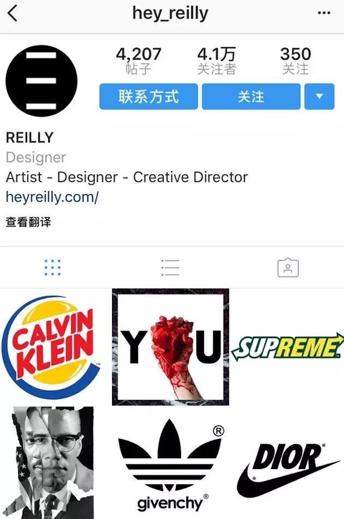 但如果仔细看Assche的配文会发现,他在添加了一连串关于Dior Homme品牌的标签后,还写明了“Regram(转发)”,也@了出处——一个叫作“hey_reilly”的账号。
