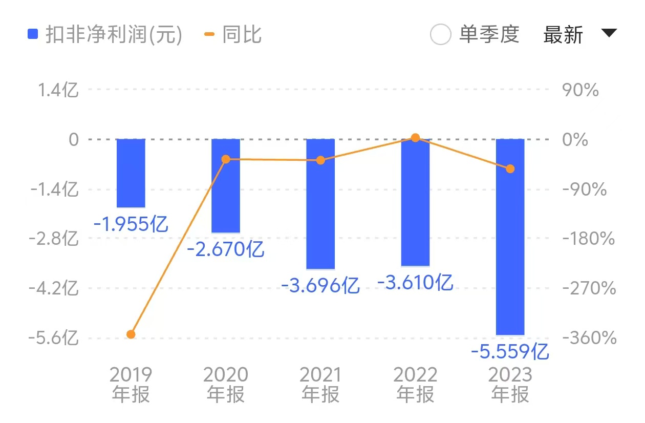 根据业绩预告,公司2024年扣非净利润预计亏损2.7亿元至3.3亿元,主业仍不见起色。
