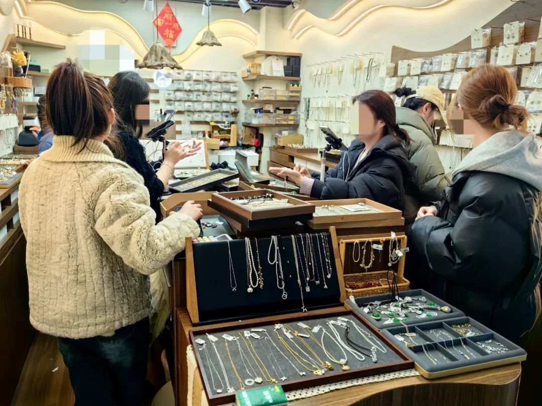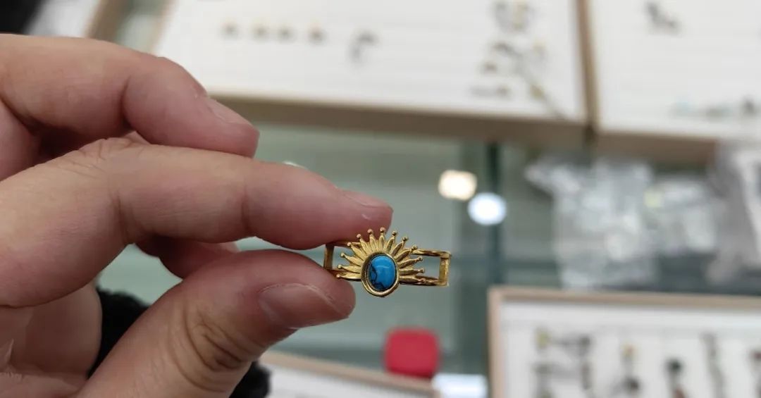 “现在首饰在国内外的社交平台上都火得一塌糊涂。你看,就这么一枚镶嵌着宝石的戒指,在那些平台上轻轻松松就能卖到几十元,甚至上百元。你猜猜在我们这儿拿货多少钱?”