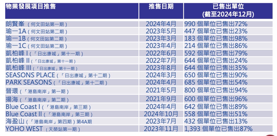 如日出康城第十一期、何文田站第一期,以及港岛南岸第一期、第二期等几个住宅项目,都在去年的销售中取得了不错的成绩。