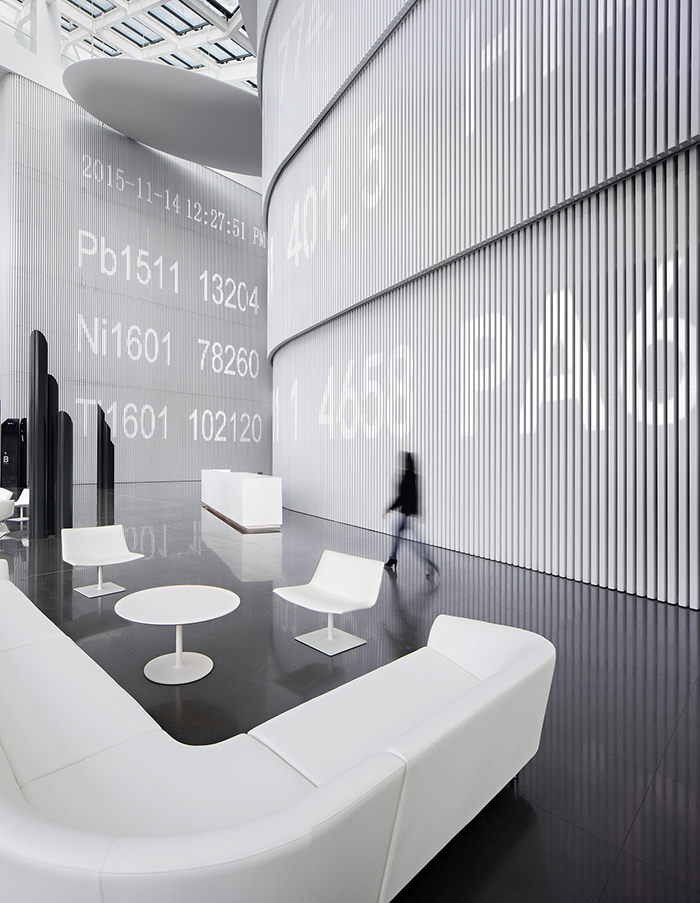 汉诺森认为西安这座具有浓厚历史印迹的现代化城市,应该有强大的包容力接纳新视野,因此没有按照当地的地域特征来设计室内方案。所以这座大楼的有着极为开放和冷静的现代感室内设计,目的在于强调中西部作为现货连续交易空白的重要性和新贸易精神。