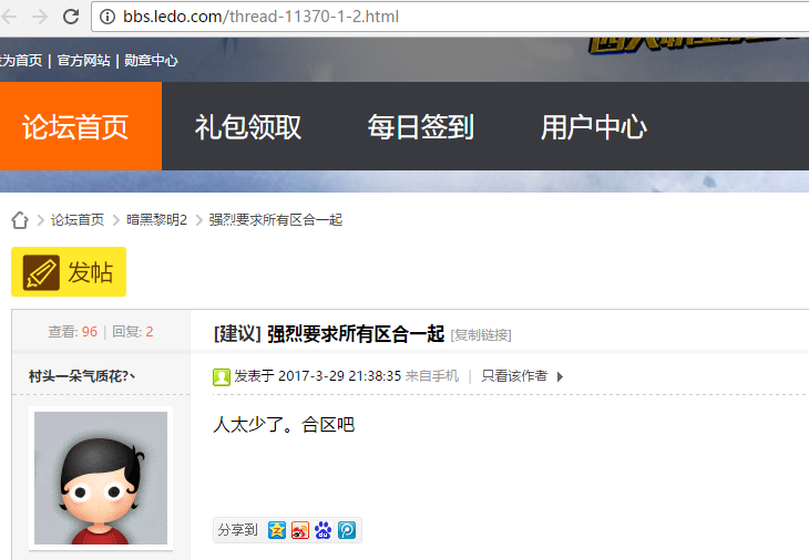 一边是不停新开服,一边是游戏人数惨淡,甚至有不少游戏玩家吐槽人数太少,要求合区(如下图)。这就是《暗黑黎明2》的“暗黑现实”。