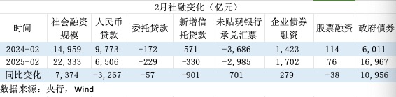 央行数据显示,2月社会融资规模增量为2.23万亿元,同比多增7300多亿元,显示金融体系对实体经济支持力度较强。分项来看,政府债券是推动2月社融增长的主要力量。