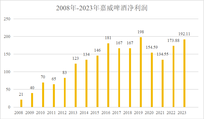 根据重啤的数据,在《包销协议》签订前的2008年,嘉威年净利润仅2000万元,而协议签订后截至2023年的15年里,嘉威累计获净利超20亿元,年均1.3亿元。2023年,即诉讼期间,嘉威净利润近2亿元,净利润率为35%。而重啤股份2023年的利润率为18.3%,仅有嘉威的一半。