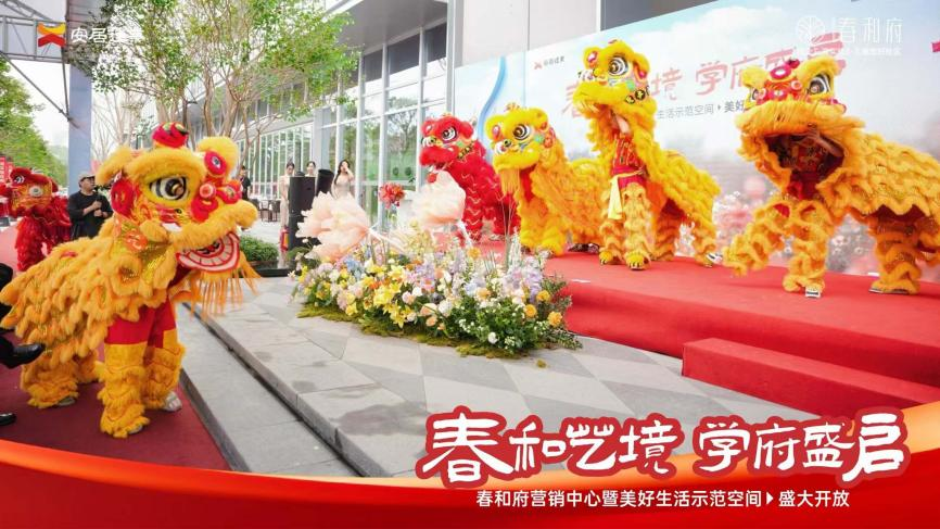 名流雅集,共襄盛举。一场心潮澎湃的醒狮表演,为开放盛典拉开序幕。随后,嘉宾手持毛笔蘸取朱砂,为醒狮点睛。寓意着春和府美好生活愿景的深切期许。