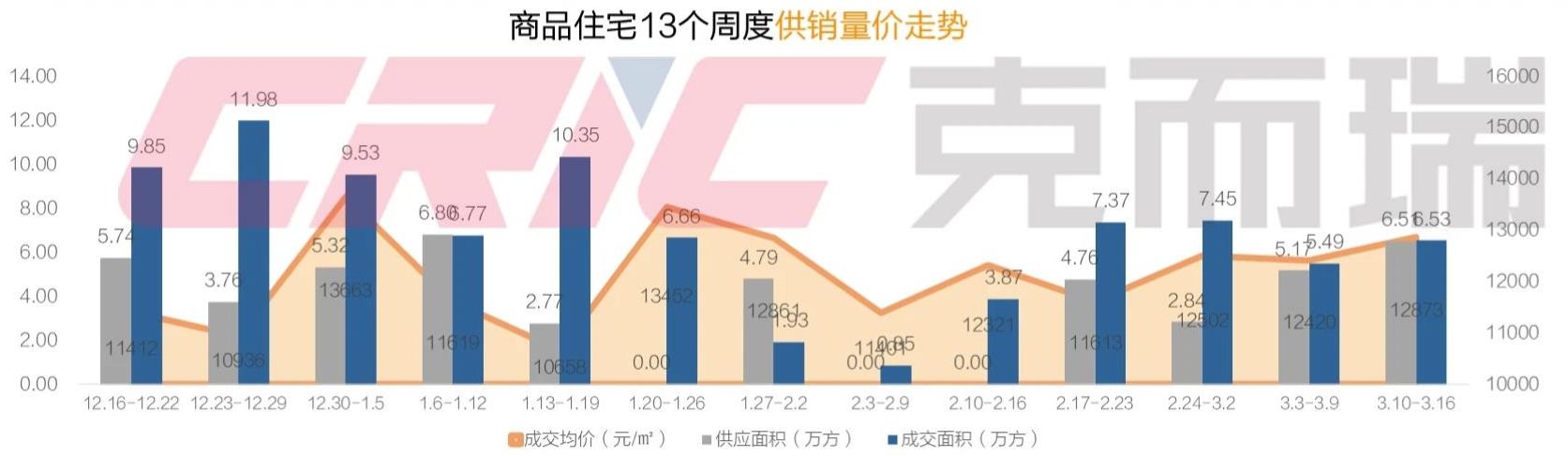 据克而瑞发布的最新信息显示,上周昆明楼市共计供应6.51万㎡,环比上涨26%;成交6.53万㎡,环比上涨19%;成交均价为12879元/㎡,环比上涨4%。