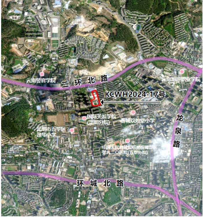 该宗地编号为KCWH2024-17号地块,位于五华区莲华街道,龙湖水晶郦城东侧,巴士家园西侧。交易文件资料显示,该地块为五华区豹子头城中村改造项目墨水厂WH-BJC2-A1-02-03地块,项目建筑高度54米,容积率≤1.6,楼面价起拍价6506元/㎡。