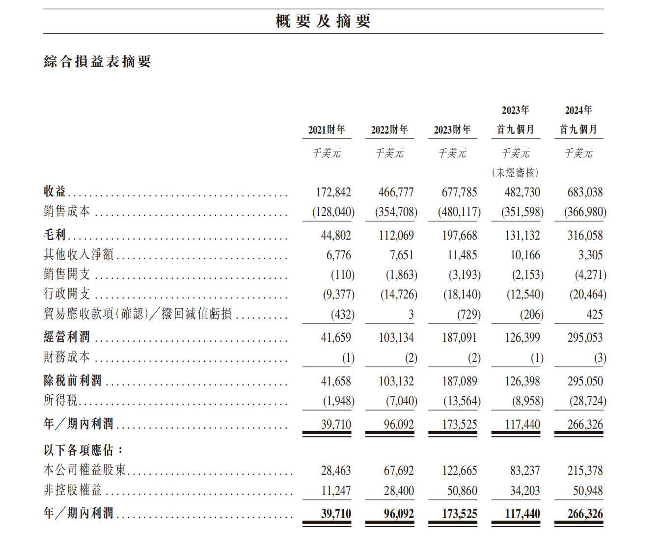 2021-2023年全年及2024年前三季度,该集团分别占南山铝业国际收益的73.3%、53.3%、47.0%及53.4%。