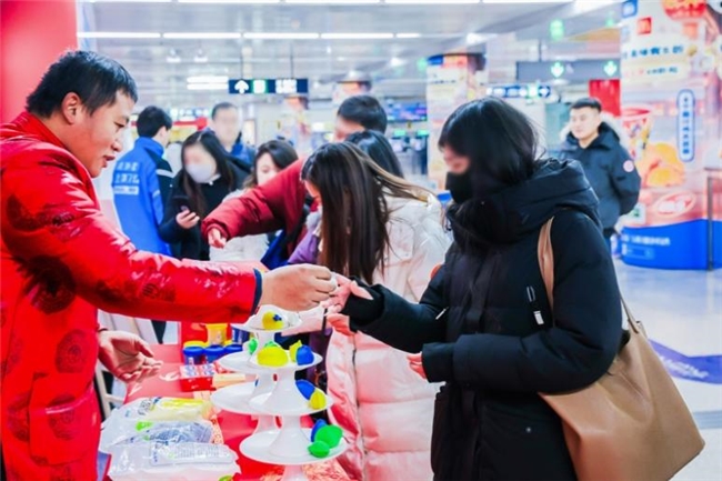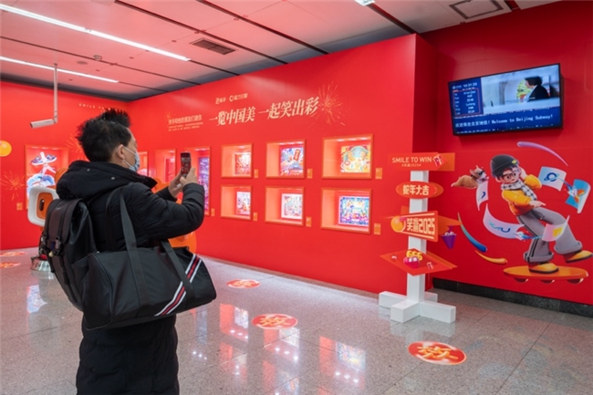 快手平台在北京地铁朝阳门站打造新春主题线下展览,活动现场以极具传统节庆氛围、象征喜庆祥和的亮红色为主色调,同时陈列展示风筝、剪纸等非遗展品,全方位营造出浓厚的节日氛围与文化气息,令过往乘客眼前一亮。此次活动以 “一览中国美,一起笑出彩” 为主题,巧妙融合新春元素,展现出独特的新春风味。