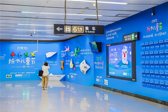 为了庆贺六一儿童节,饿了么将大家记忆中的纸飞机、纸鹤等折纸款式用模型装置还原上墙,并在现场派发折纸,成功让每一位乘客感受到浓浓的童年氛围,带大家回到那个简单快乐的年代。精致的折纸船模型吸引乘客在此打卡拍照,留下美好的瞬间。在让孩子们感受活动趣味的同时也引发在场的众多家长对自己的童年的回忆,引起强烈情感共鸣,产生大量的自发传播,助力品牌破圈。