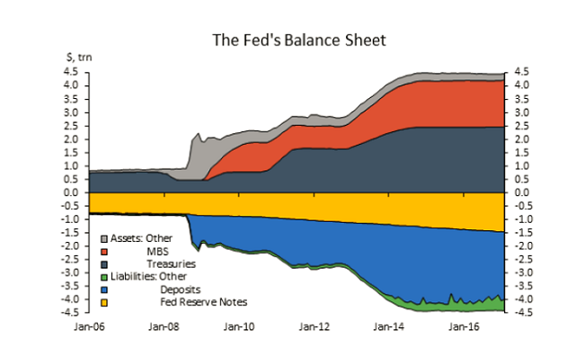 在2015年12月进行近10年来首次加息时,FOMC宣布,将继续延展到期资产,直到联邦基金利率正常化能够顺利进行之时。目前,经济和通胀在持续改善,美联储已经又进行了两次加息,并且释放出了将继续加息的信号。因此,它决定着手解决其庞大的资产负债表。