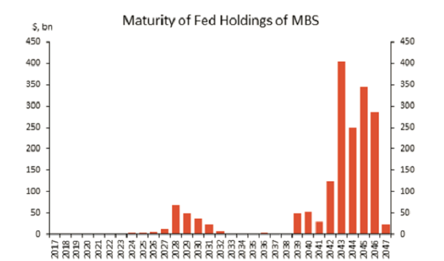 目前,委员会预期不会把出售MBS作为货币政策正常化的一部分,虽然较长期内可能允许有限制地出售,以减少或清除所持剩余部分。