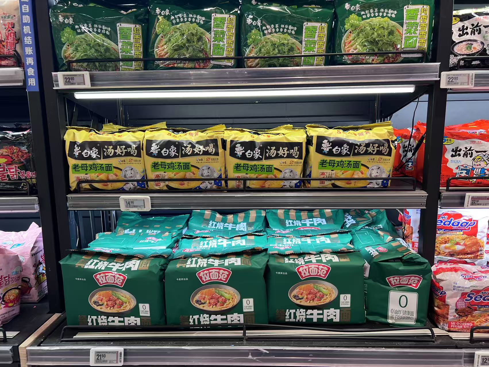 “从这几年方便面的市场动向来看,明显白象的势头要高出一截,统一和康师傅这两大巨头逐渐将白象视作竞争对手,而今麦郎的差距被逐渐拉大。”一位不具名的线下快消零售从业者对界面新闻表示。而另一个食品饮料电商业务从业者则对界面新闻称,白象在电商领域的优势和增长更为明显。