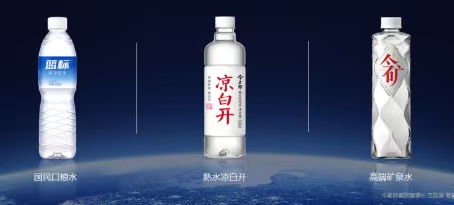 近年来今麦郎重点推进的是包装水业务,目前它的产品线包括纯净软水“蓝标”、熟水“凉白开”,以及矿泉水“今矿”三大系列,分布覆盖1、2、3元不同价格带。