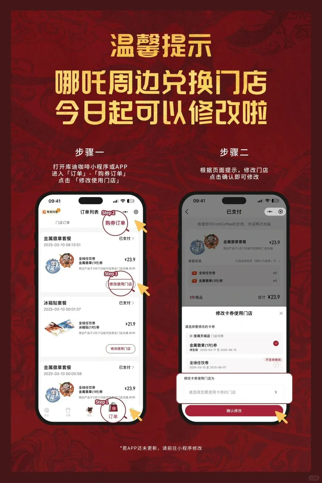 比如有人反馈买错不能退单,选错周边兑换门店无法更换,库迪随即修改活动规则。