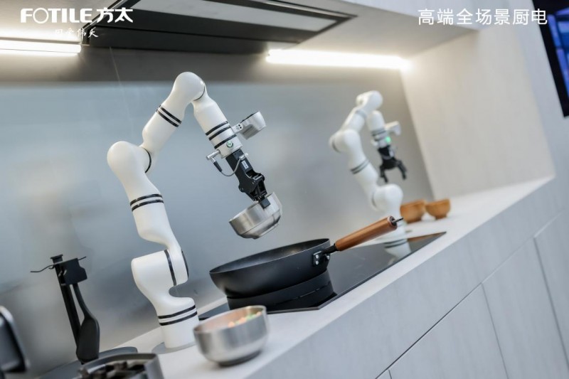 在自动烹饪场景中,3D全感知机械臂的加入完成了智能闭环的“最后一公里”。这款机械装置,突破了中式烹饪的动态控制难题,可以拟人化自主完成烹饪中的复杂操作。从菜品的切配,到全流程明火烹饪,涵盖抓取、控温、翻面、调料添加,再到台面的收纳,以及烹饪场景的清洁。不同于固定轨迹下的“笨拙”指令操控,3D全感知机械臂可感知场景难题,理解用户需求、识别火候温度、污渍等场景信息,自动推进任务流程,实现真正意义的“解放双手”。可以说,在机械臂学会感知锅气的瞬间,中式烹饪完成了从经验传承到数据重构的进化。