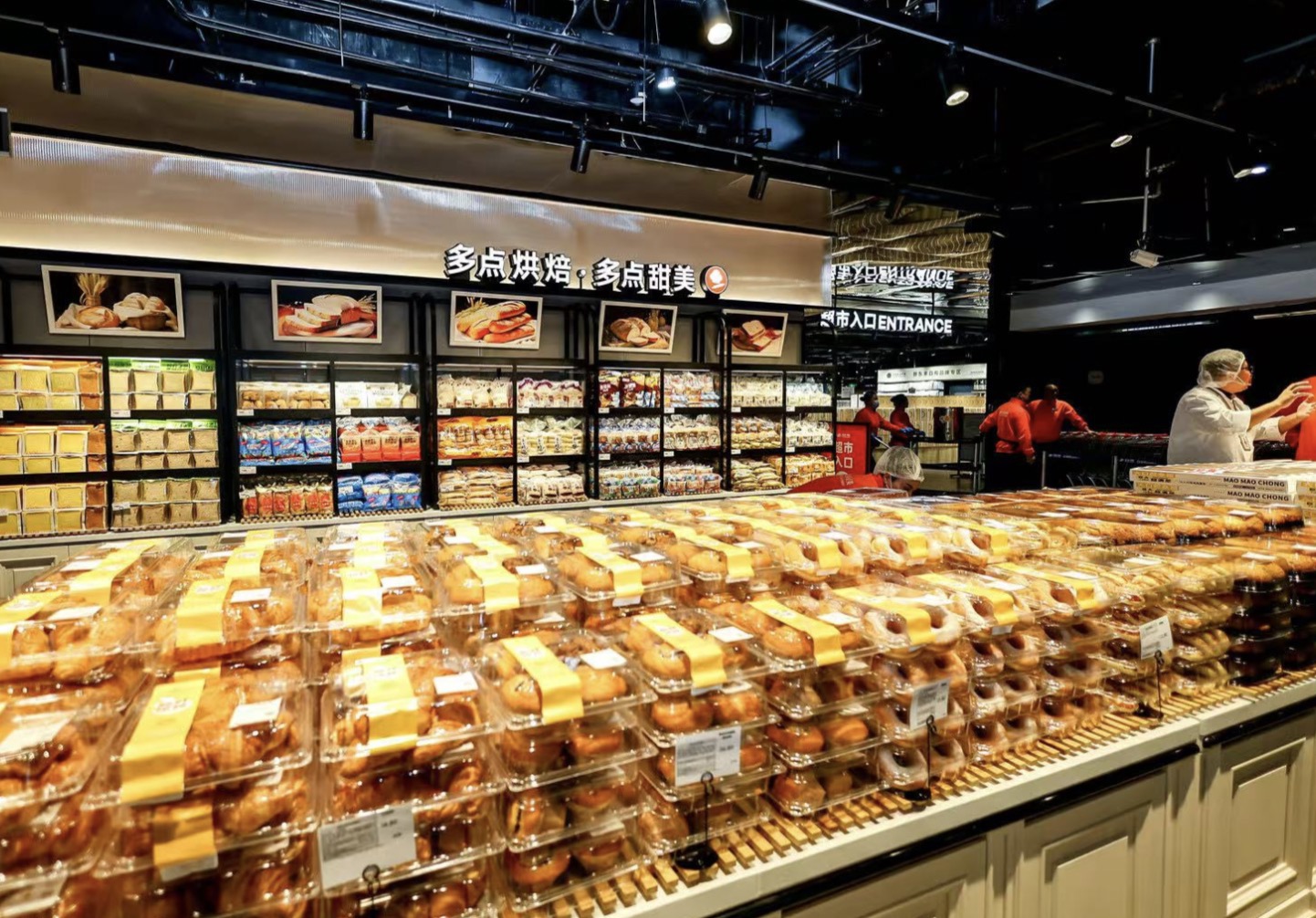 毋庸置疑,永辉调改门店的效果有目共睹,根据界面新闻此前获得的数据,永辉喜隆多店在开业前5天,销售额达770万元,进店客流量20万人次,结账客流数6.6万人次,以此计算日均销售额为154万元。尤其是现场的烘焙和熟食成为销售额贡献的两大利器,烘焙类商品增长868.63%,熟食类商品增长1445.57%。