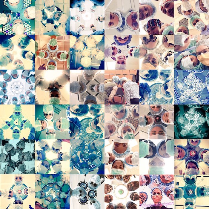 这迅速引起了许多人的共鸣:为了有一天能带上蓝色口罩站上手术台,女性医学工作者往往面临着医生职业的性别歧视、需要付出比男性更多的努力。各个地区、各种肤色的女医生都玩起了模仿,照片参与人数最多的从原本的4个增加到了16个。