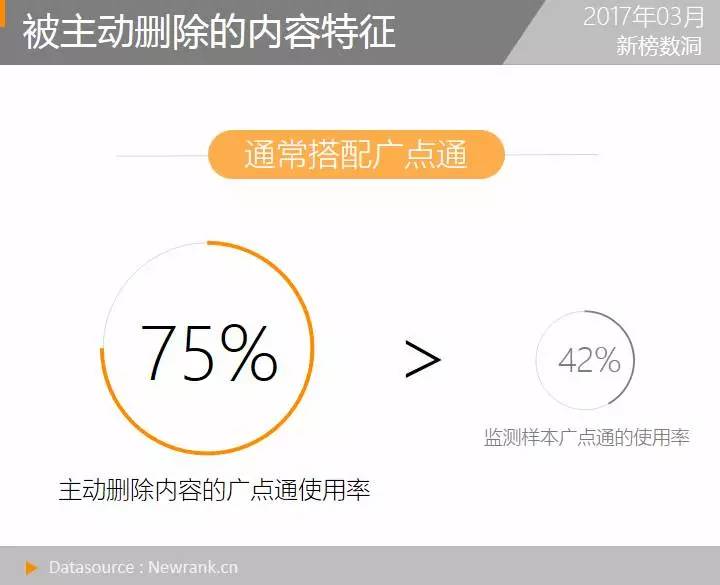 不仅如此,这些内容在文末配备广点通广告也较全样本积极,配置比率(75%)远高于监测样本(42%)。