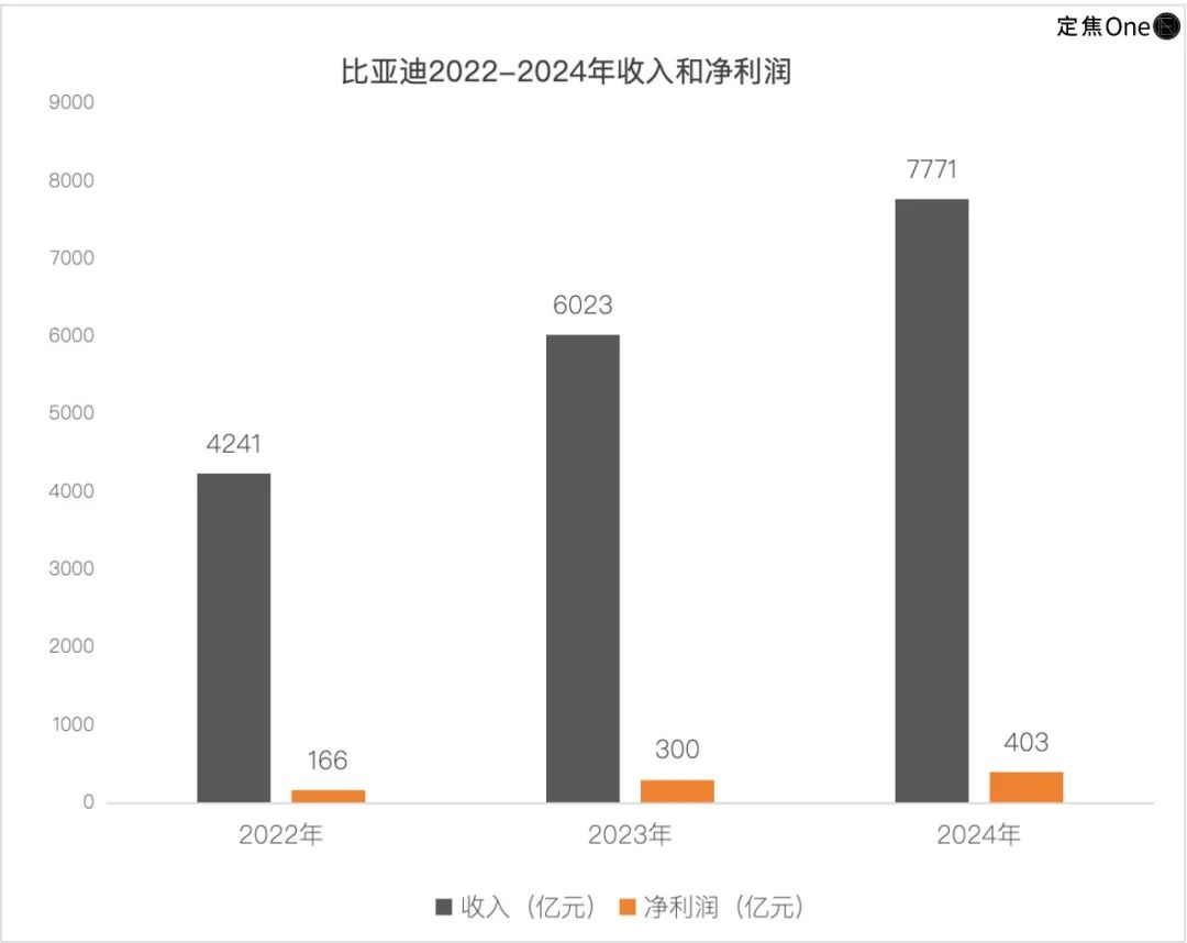 所以,在价格战激烈的中国市场,比亚迪凭借规模和产业链整合优势,毛利不降反增,成为中国最赚钱的新能源汽车厂商——2024年实现了402.5亿元的净利润。