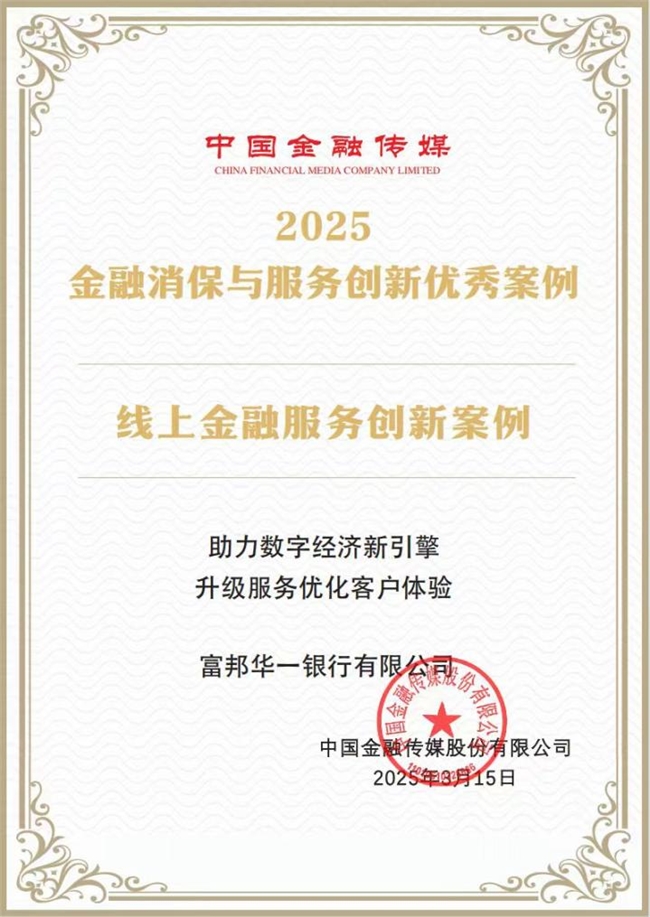 近日,中国金融传媒以“保障金融权益 助力美好生活”为主题在京举办2025金融消保与服务创新主题活动,并正式发布2025年金融消保与服务创新优秀案例名单。富邦华一银行(以下简称“富邦华一”)凭借其数字人民币建设项目的创新实践,从百余个参评案例中脱颖而出,成功入选“线上金融服务创新案例”。