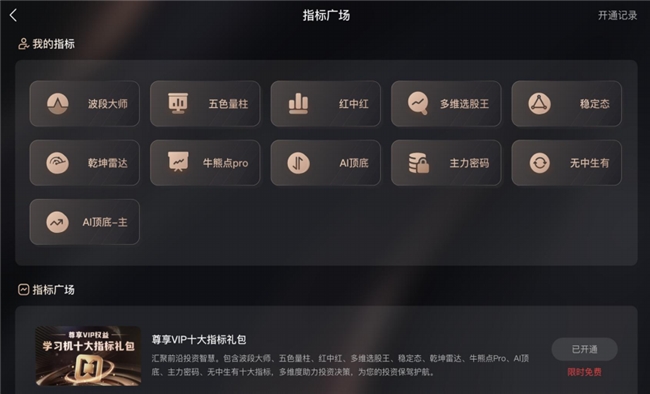 其中,趋势研判类指标有波段大师、牛熊点Pro、AI顶底。波段大师具备辅助判断阶段性市场底部与高点的能力,为投资者高抛低吸提供有力支持。牛熊点Pro分析市场数据和趋势信号,助力投资者识别短线高爆发机会。AI顶底通过大数据算法,标记潜在高低点区域。