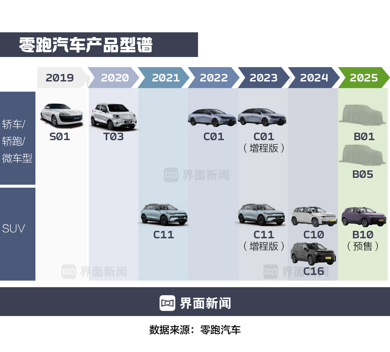 零跑汽车高级副总裁、整车产品负责人曹力向界面新闻透露,T03和C11两个项目并行,但他们调研后发现,C11所处的电动汽车用户群体,青睐中高端车型,对科技质感要求高,原有的中型SUV规划很难契合用户需求。