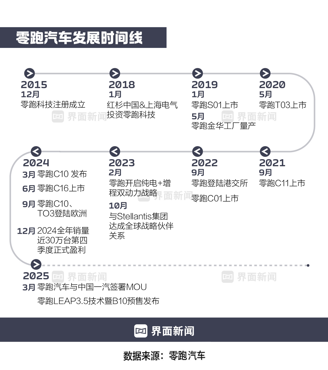 梅松林向界面新闻表示,零跑的运营节奏踩得很准。在资本市场对新能源汽车还抱有乐观预期之时,成功在港股上市,为后续发展拓宽了融资渠道;又在急需资金扩张之时,吸引了Stellantis的入股。
