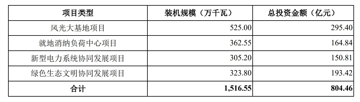 招股书显示,华电新能拟建设风力发电、太阳能发电装机容量1516.55万千瓦,覆盖全国23个省(自治区、直辖市),总投资金额高达804.46亿元,远超180亿元的募集资金规模。