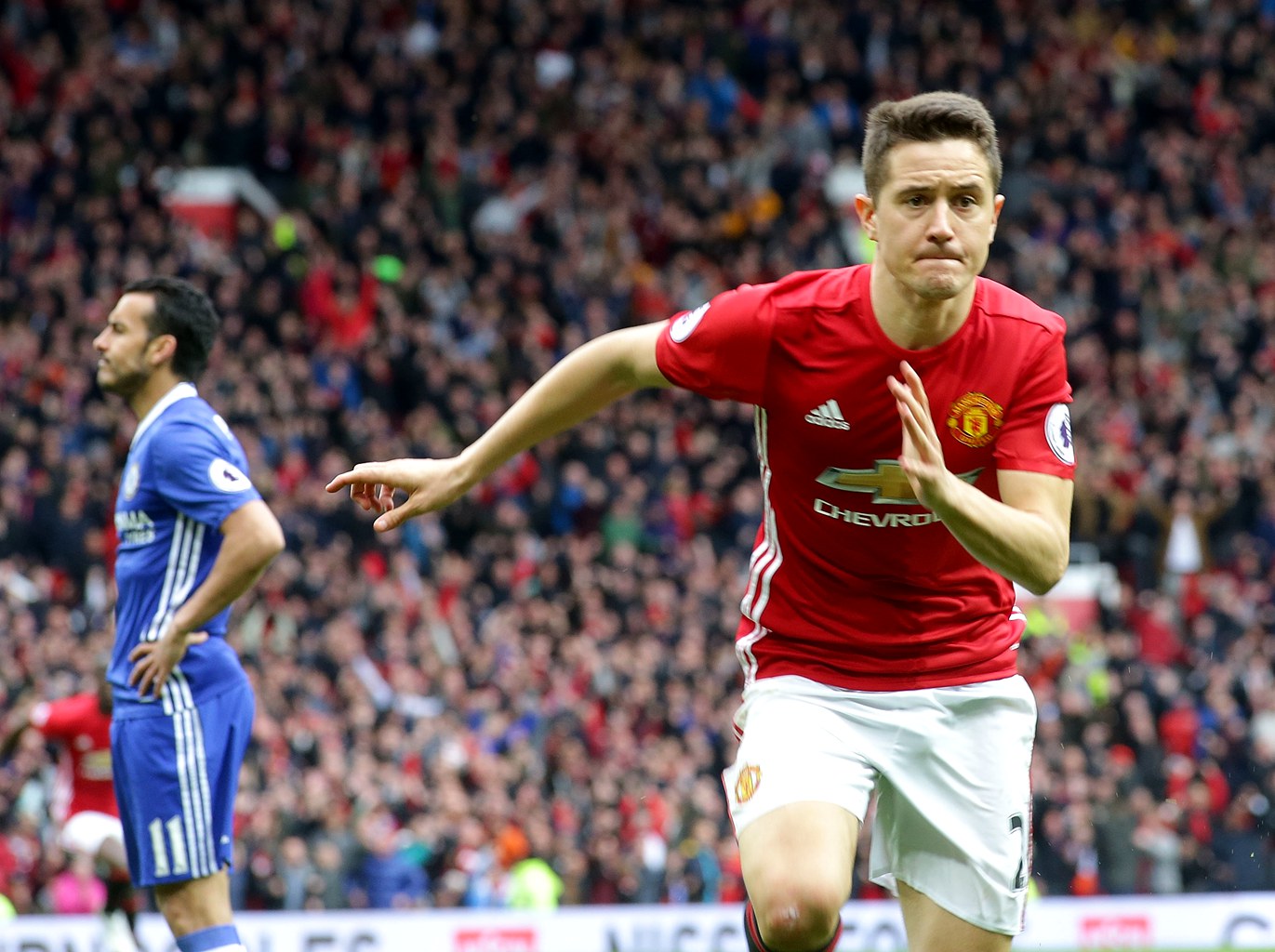 易边再战,曼联再次上演闪击破门的好戏。第49分钟,阿什利·扬从坎特脚下断球后沿左路突入禁区,随后皮球被祖玛挡了一下后弹出,跟上的埃雷拉随即大力远射,皮球又打在祖马腿上偏转入网,2-0!这也是埃雷拉从2016年2月以来33场英超比赛的首粒进球,与此同时,西班牙人也自2015年10月以来首次在英超比赛中传射建功。