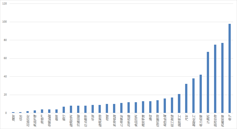 以各家私募关注度最高的前三只个股情况来看(调研个股数量不足3只的私募以实际调研数量计算),共涉及646只个股。以申万一级行业分类为参考,其中电子、机械设备、医药生物、计算机四个行业被调研的个股数量最多,分别为99只、77只、75只和67只,电力设备、基础化工、汽车、国防军工等行业被调研的个股数量也都排名居前。