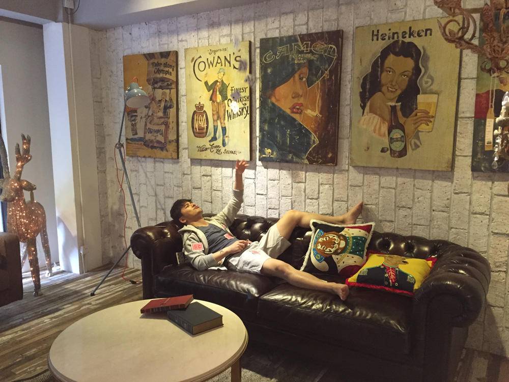 现在是中午,刚刚过了12点钟没一会,gogoboi家的门开了。迎向我的是巨大的音响声,国外流行乐的声线充斥了整间屋子。他穿了一件白色T恤和浅色丹宁,裤子的膝盖处剪开了,露出皮肤,裤腿也是,带来一种崭新的陈旧感。他似乎刚刚洗了澡,头发没干透,能看见水滴,蜷曲在头顶。他有点羞涩,递给我一双白色拖鞋,“酒店拿来的。”