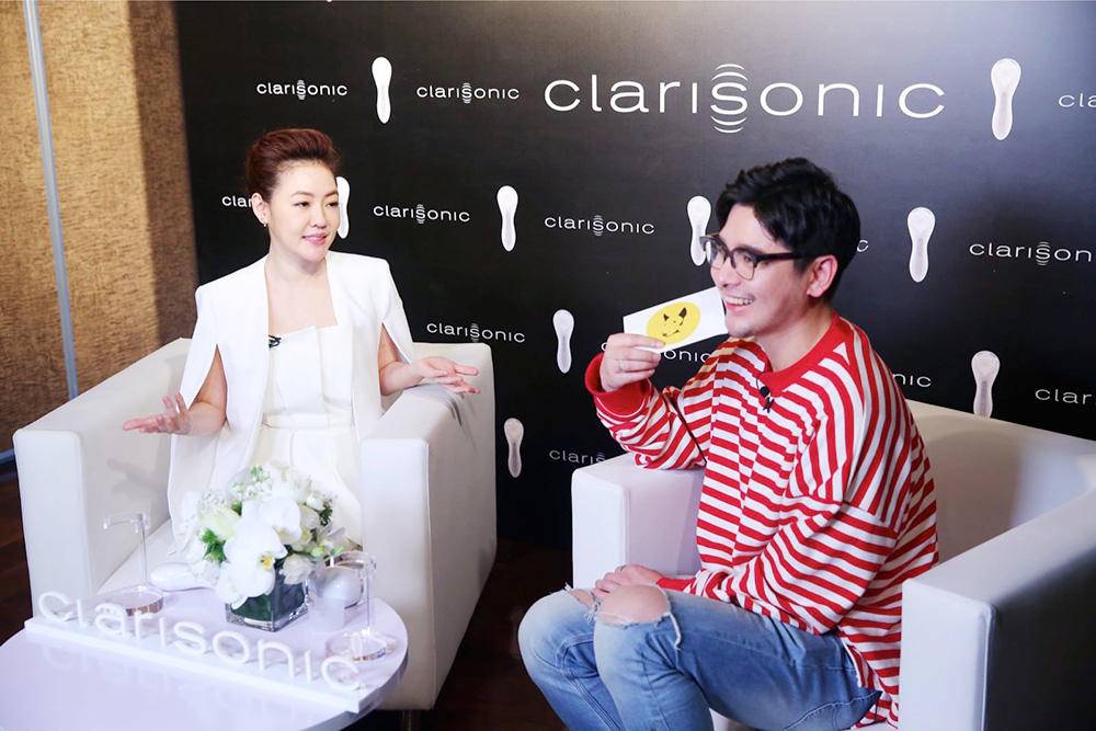 他请小S介绍科莱丽洁面仪,这是品牌方要求谈论的话题。他借机问她:“你要不要真的把妆卸了,从洗脸开始示范?”