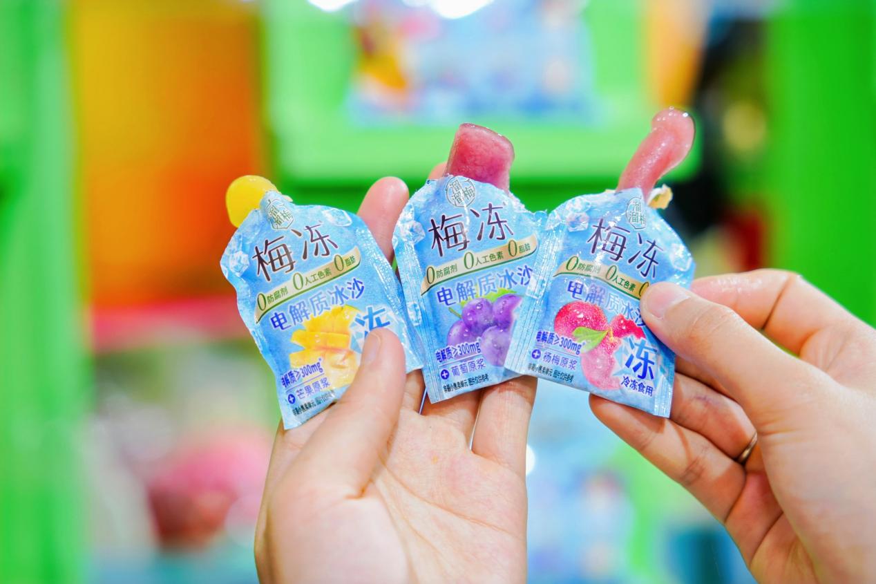 溜溜梅·电解质冰沙梅冻添加了钾、钠等矿物质,电解质含量更≥300mg/300g,可以助力人体维持体液平衡。每袋含芒果、杨梅和葡萄三个口味,或酸甜交织,或浓郁绵密,或清甜冰爽,同样坚持0防腐剂、0人工色素、0脂肪,大人小孩都可放心食用。夏天消暑,就吃电解质冰沙梅冻。