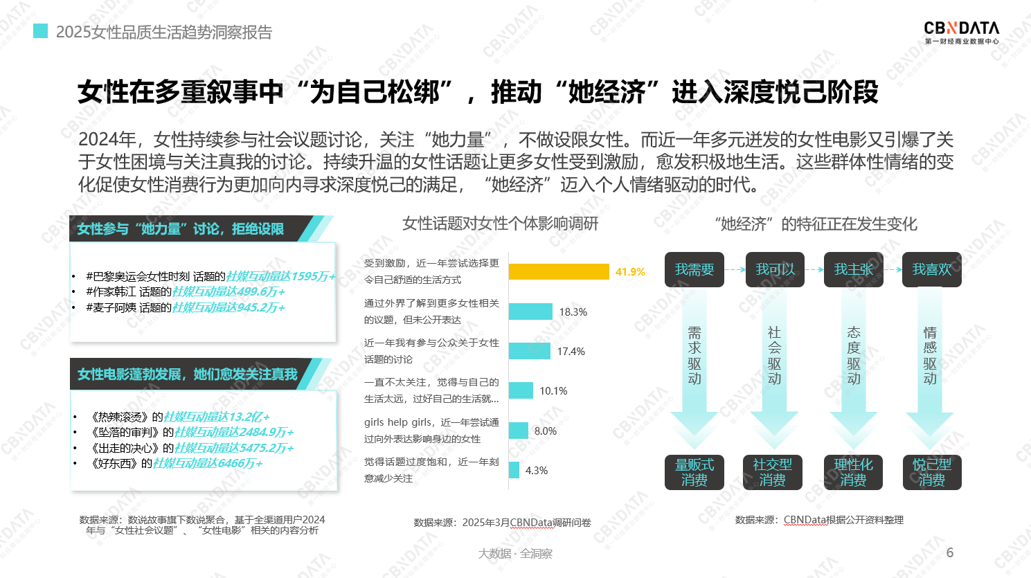 为了描绘出“她经济”的变迁,第一财经商业数据中心(CBNData)以记录者的身份连续第六年重磅发布《我们的叙事·2025女性品质生活趋势洞察报告》(下简称《报告》),旨在女性的消费投票中捕捉女性情绪,理解女性诉求,揭示女性消费叙事变化,从而还原当下的女性品质生活图谱。
