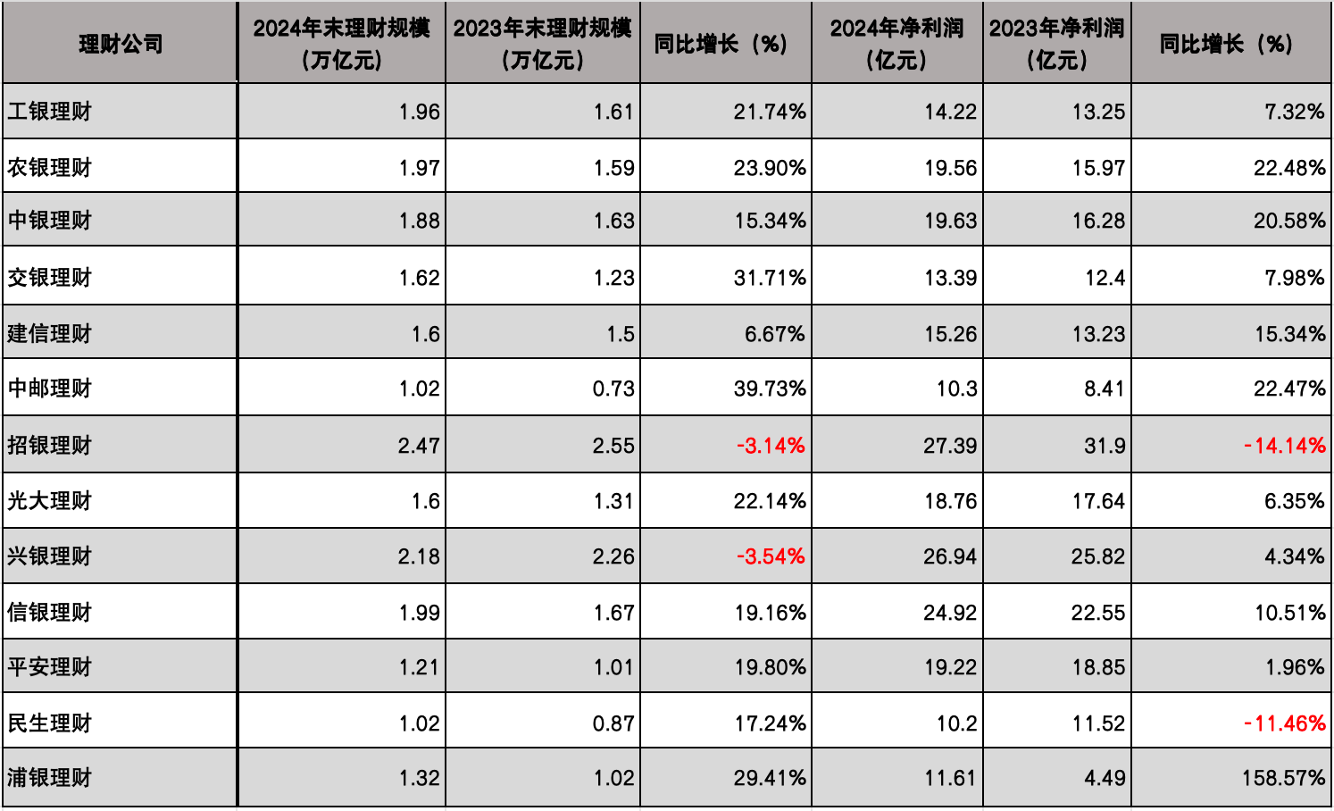 随着六家国有大行以及头部股份行年报披露完毕,主要银行理财子公司(理财子)过去一年的经营情况也随之揭晓。