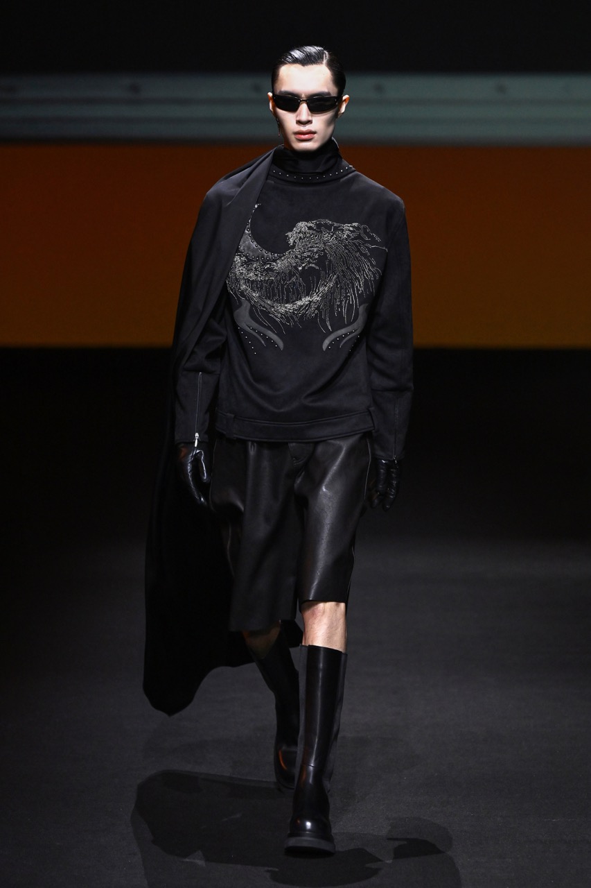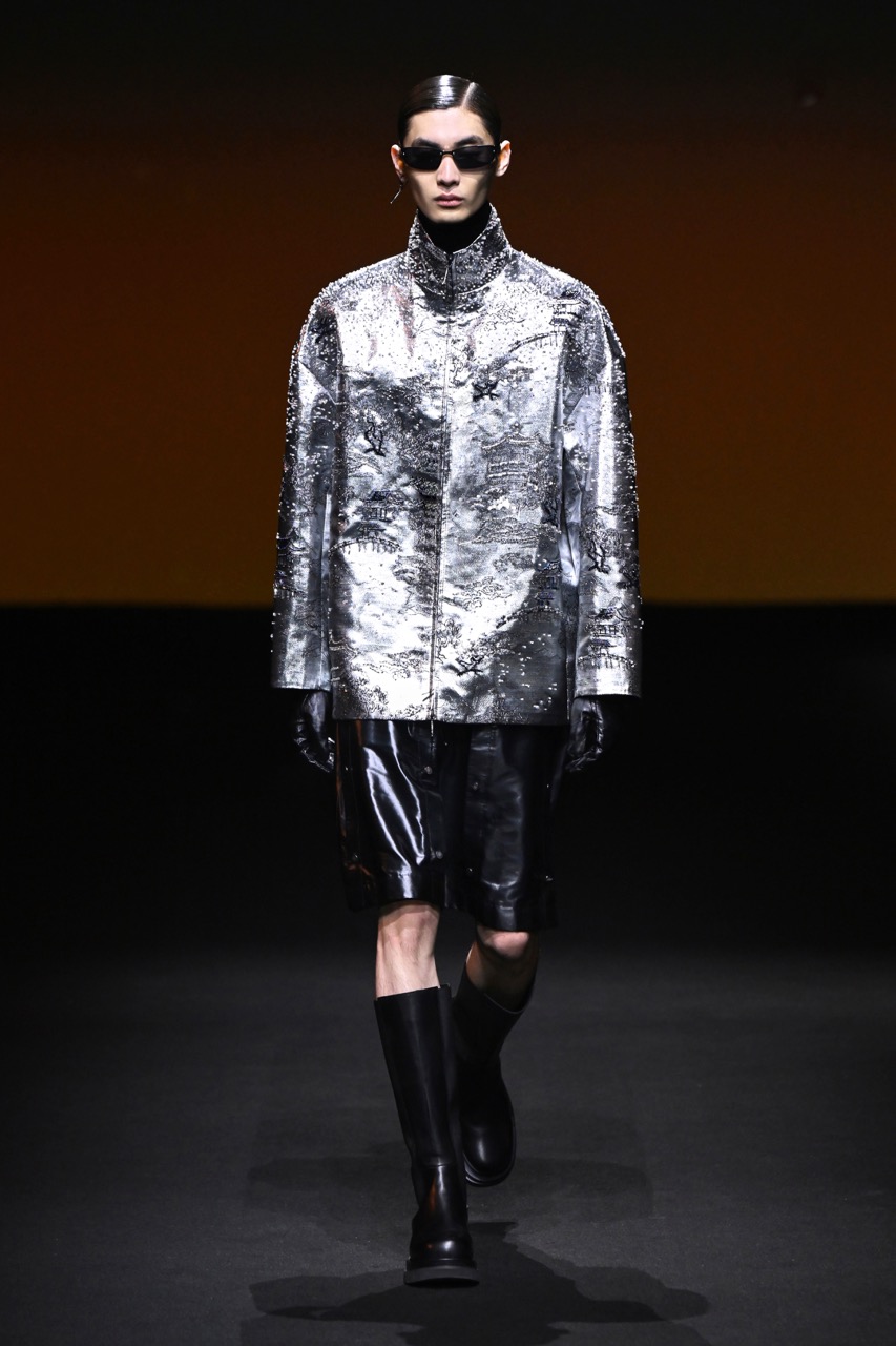 新系列灵感汲取自神秘的东方传说,以“月光宝盒”与“解锁藏宝阁”构成秋冬两大篇章。秋季部分通过黑色皮革上的月牙与海浪图案,融合岩石纹理与银色光泽,营造出如水面般柔和宁静的视觉效果;而冬季系列则以鎏金工艺与立体皮革展现未来感,非遗香云纱材质与功能羽绒结合,雕刻纽扣与拉链象征解锁藏宝阁的仪式感,为探索者赋予勇气与温度。