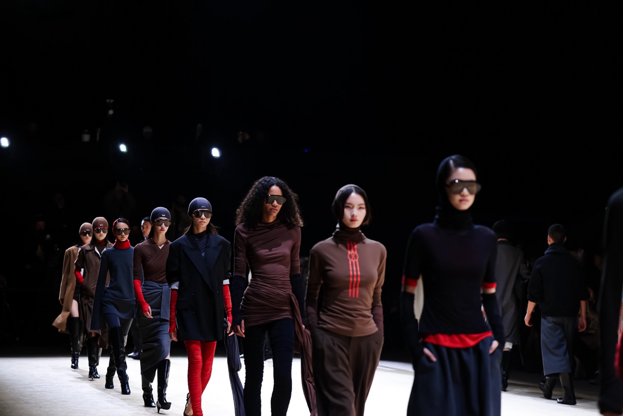 秋冬新品强调“一衣多穿”设计理念,通过面料、廓形与搭配方式的全面升级,实现从“内穿”到“外穿”的功能突破。秀场以三枪标志性“中国红”为主视觉,融入复古与现代元素,构建出兼具舒适性与时尚感的产品体系。