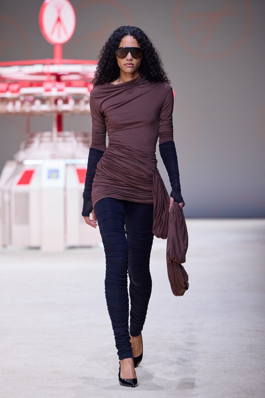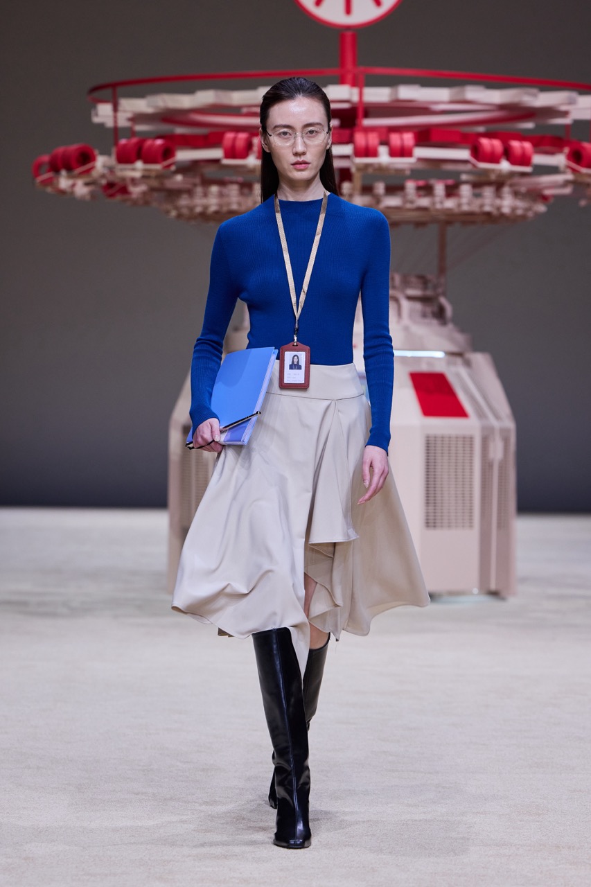 本季灵感还借鉴了纤维艺术和装置艺术作品,将“流动的雕塑”作为设计理念之一,在服装结构中融入曲线与层次。同时,泥染工艺的运用使天然纤维呈现出富有东方韵味的肌理变化。