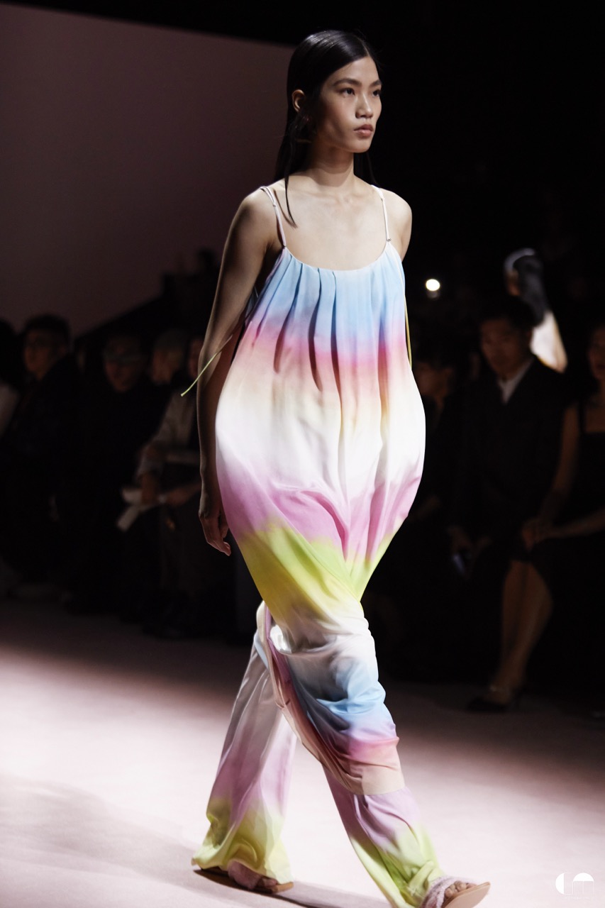 整个系列以麻质面料为主,注重透气性与质感,配合斜裁、毛边等细节,展现出天然原生的轻盈质地。在廓形上延续品牌一贯的利落风格,通过裙摆、袖口的流动感,塑造自在从容的视觉印象。