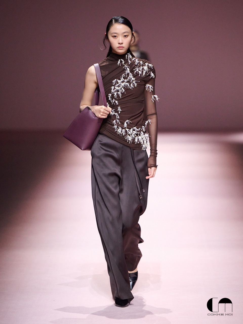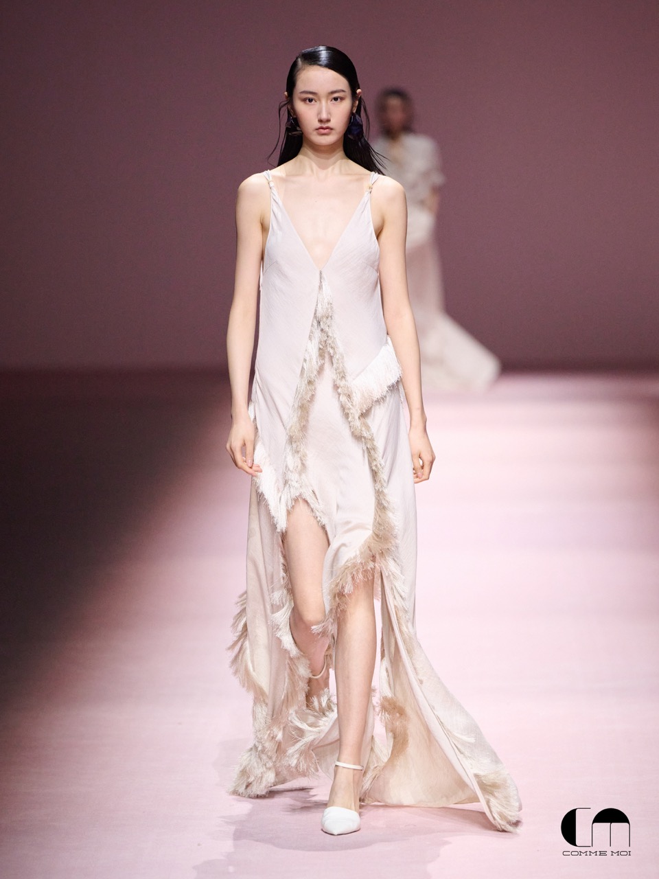 整场发布从视觉、结构到工艺语言,均围绕“轻盈而坚定”的女性气质展开。COMME MOI借由2025春夏系列,继续推进都市时装的温柔表达与自由精神的融合。