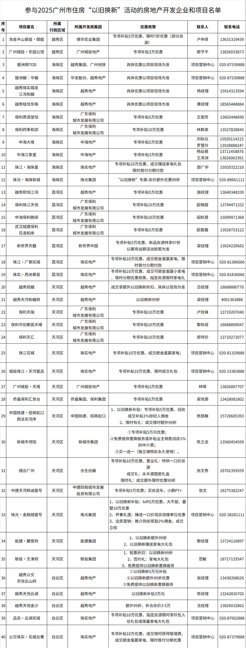 本次活动首批吸引超40家房企、近70个项目参与,覆盖刚需、改善、高端全产品线,并推出“折上折”“无忧退订”“家装大礼包”等叠加优惠。广州市房协将依托“广州市房地产行业协会”官方微信小程序搭建线上服务平台,实现房源智能匹配、补贴申领、政策咨询等功能,进一步优化市民换房体验。
