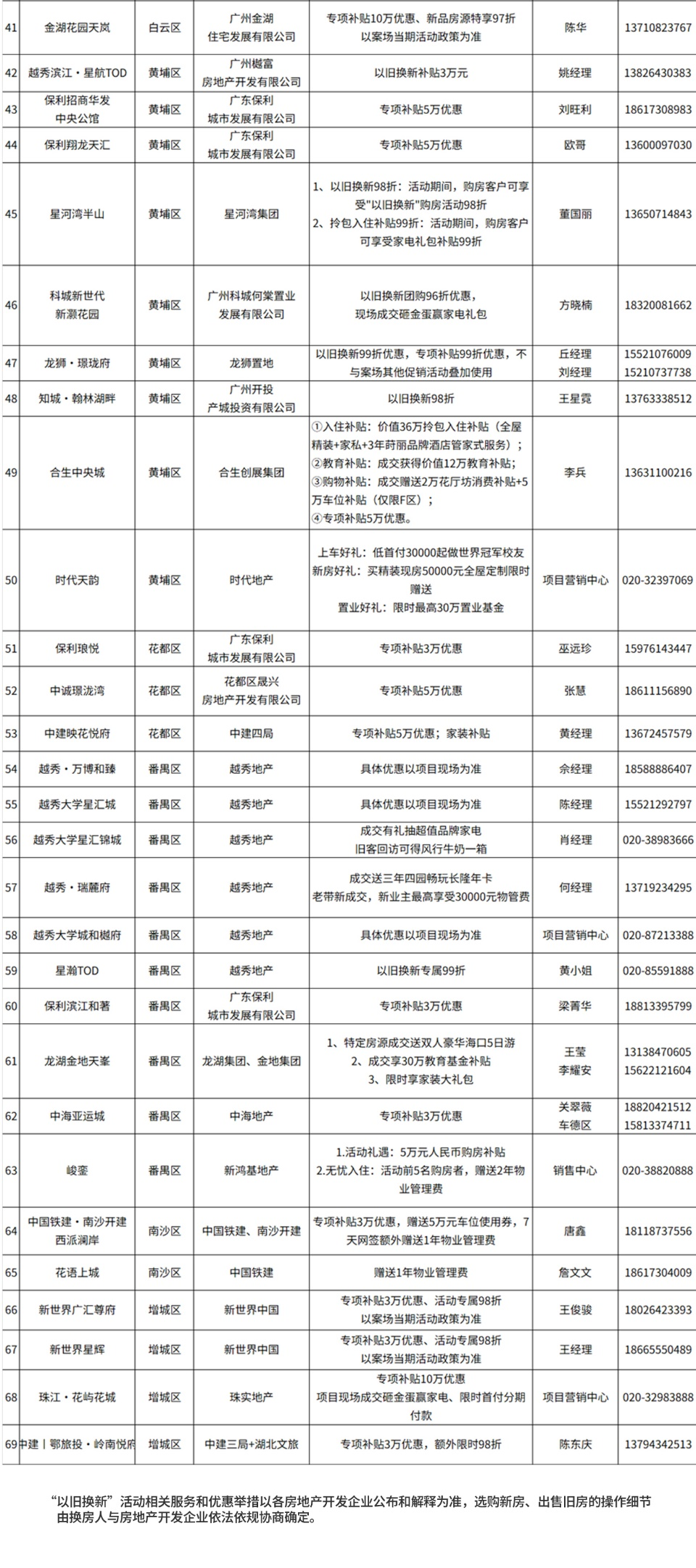 (“以旧换新”活动相关服务和优惠举措以各房地产开发企业公布和解释为准,选购新房、出售旧房的操作细节由换房人与房地产开发企业依法依规协商确定。)