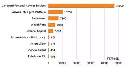 事实上,在国内智能投顾这几年发展很快,截至2017年2月,Vanguard所管理的金额规模达到了470亿美元,而第二名的Schwab Intelligent Portfolio只有102亿美元,就目前来看,国外智能投顾领域存在较为明显的三个梯队。