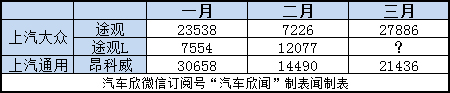 再来看途观L,如果我们用上汽大众公布的一季度销量减去以乘联会公布的1-2月销量,可以算出途观L的3月销量是16369台。考虑到途观的相关数据中,上汽大众和乘联会数字的误差大约是76%,我们或许可以大致换算出,以乘联会的标准,3月途观L的销量应当更接近12382台。这个数字大约可以使途观L排在SUV销量榜的第18位,略低于福特锐界,略高于广本缤智和一丰RAV4。