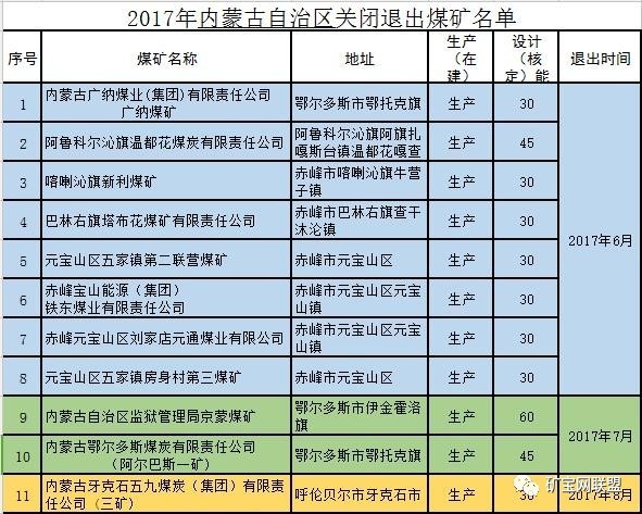 根据公告,16处煤矿全部为生产煤矿,位于包头、呼龙贝尔、赤峰、鄂尔多斯等市,退出时间从2017年6月到9月不等。