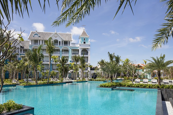今年初刚刚开业的越南富国岛JW万豪度假酒店,则是把西贡(胡志明市)大街上浪漫的洋楼建筑风格搬到了海岛上。